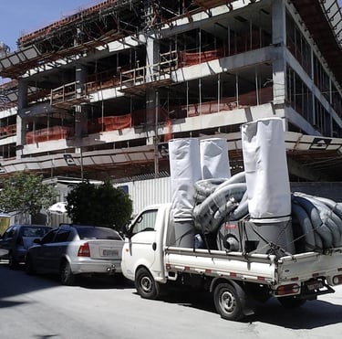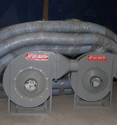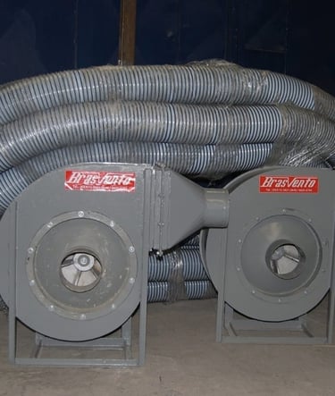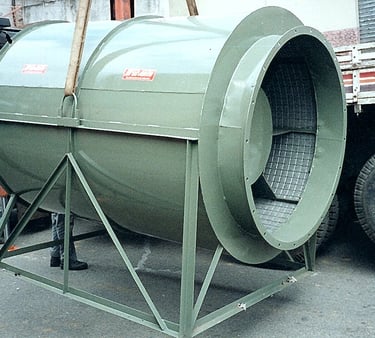 Sistemas de insuflamento e exaustão para túneis, impermeabilização, lixamento, secagem, pintura, galeria e subsolos.